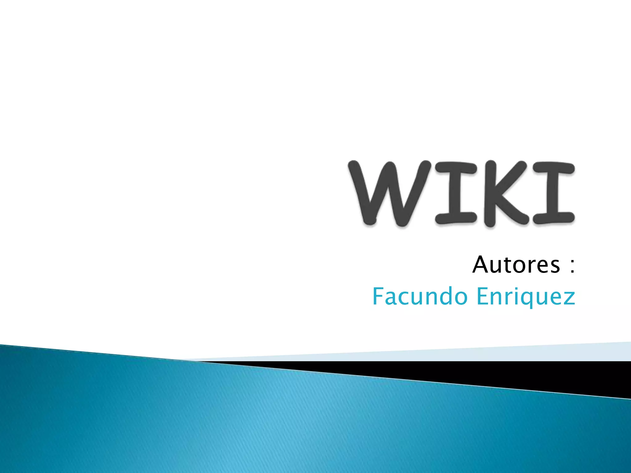 Un wiki es una página web cuyos contenidos pueden ser editados por múltiples usuarios a través de cualquier navegador. Los wikis permiten la coautoría mediante un lenguaje de wikitexto y son fáciles de crear y actualizar. Wikipedia es el wiki más famoso con millones de definiciones, conceptos y tipos de información.