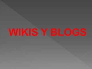Este documento compara wikis y blogs. Las wikis son sitios web colaborativos donde los usuarios pueden crear y editar conjuntamente páginas. Los blogs son sitios donde los autores publican artículos de forma cronológica y permiten comentarios de lectores. Ambos pueden usarse para compartir información educativa, aunque las wikis se enfocan más en la colaboración grupal.
