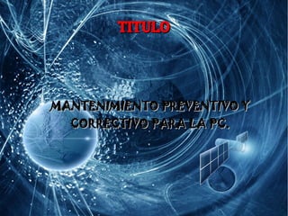 Este documento habla sobre el mantenimiento preventivo y correctivo de una computadora. Explica que el mantenimiento correctivo implica reparar o reemplazar componentes cuando hay fallas, mientras que el preventivo busca prevenir fallas. Luego detalla diferentes tipos de mantenimiento correctivo de hardware y software, herramientas necesarias, fallas comunes y soluciones.