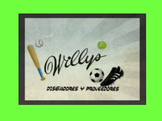 Willys diseñadores y proveedores CA es una empresa venezolana especializada en la venta, confección y distribución de equipos deportivos. Ofrece una amplia variedad de productos deportivos importados de marcas reconocidas internacionalmente como Adidas, Nike y Puma, así como artículos producidos localmente como uniformes deportivos. La empresa busca satisfacer las necesidades de compradores mayoristas y minoristas a través de la venta en línea, publicidad en redes sociales y canales de distribución como envíos a nivel nacional.