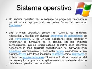 Este documento resume la historia y evolución de los sistemas operativos desde la década de 1940 hasta la década de 2010, con un enfoque en Windows 95. Discutió los orígenes de los sistemas operativos, los cambios tecnológicos clave en cada década, y las características y versiones principales de Windows 95.