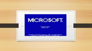 Windows 1.0 fue la primera versión de Microsoft Windows lanzada en 1985. Fue desarrollada por 55 programadores y no permitía ventanas en cascada. Incluyó características como menús desplegables, ventanas en cascada y soporte para mouse, así como gráficos independientes del dispositivo e impresora. Hubo varias actualizaciones posteriores que agregaron nuevas funciones y corrigieron errores.