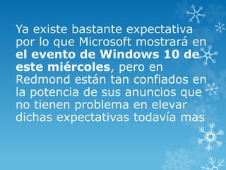 Microsoft está muy confiada en los anuncios que hará en su evento de Windows 10 de este miércoles. Phil Spencer, ejecutivo de Xbox, indicó que presentarán las mejores características de juegos para PC en Windows 10 y que el equipo de Xbox está desarrollando novedades para iniciar la discusión con los jugadores. Se especula que uno de los anuncios podría ser una nueva plataforma para juegos en PC integrada con Xbox Live.