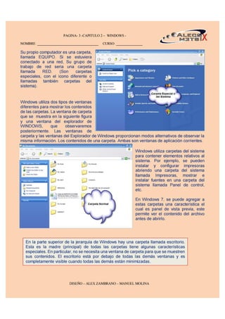 El documento describe diversas funciones y atajos de teclado en sistemas operativos y aplicaciones como Word, Paint y navegación de carpetas. Se enfatiza la utilidad de manejar comandos sin el mouse para mejorar la eficiencia en el uso de software. También se mencionan aspectos de personalización del escritorio y configuraciones de programas instalados.
