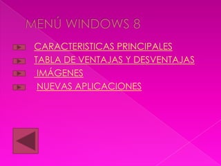 Windows 8 tendrá soporte para USB 3.0 que es 10 veces más rápido que USB 2.0, una tienda de aplicaciones similar a la App Store de Apple, soporte para aplicaciones basadas en HTML5 que funcionen en computadoras y dispositivos móviles, y transferencia de archivos en una sola ventana con información detallada.