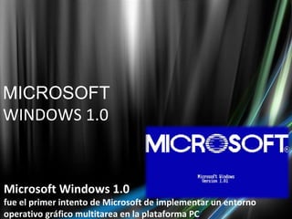 El documento resume las principales versiones del sistema operativo Windows de Microsoft desde Windows 1.0 hasta Windows 8. Comenzó como un intento de implementar un entorno gráfico multitarea en PC y evolucionó a través de versiones mejoradas que ganaron popularidad. Las versiones clave incluyen Windows 95 que fue un éxito comercial, Windows XP que fue popular pero luego reemplazado por Windows 7, la versión más reciente diseñada para uso en PC.
