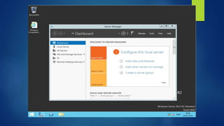 Windows Server 2012 R2 es un sistema operativo de Microsoft para servidores. Proporciona roles como servidor web, Active Directory y Hyper-V para virtualización. Incluye características como administración de direcciones IP, interfaz rediseñada y PowerShell para automatización. Puede instalarse en modo gráfico completo o solo línea de comandos.