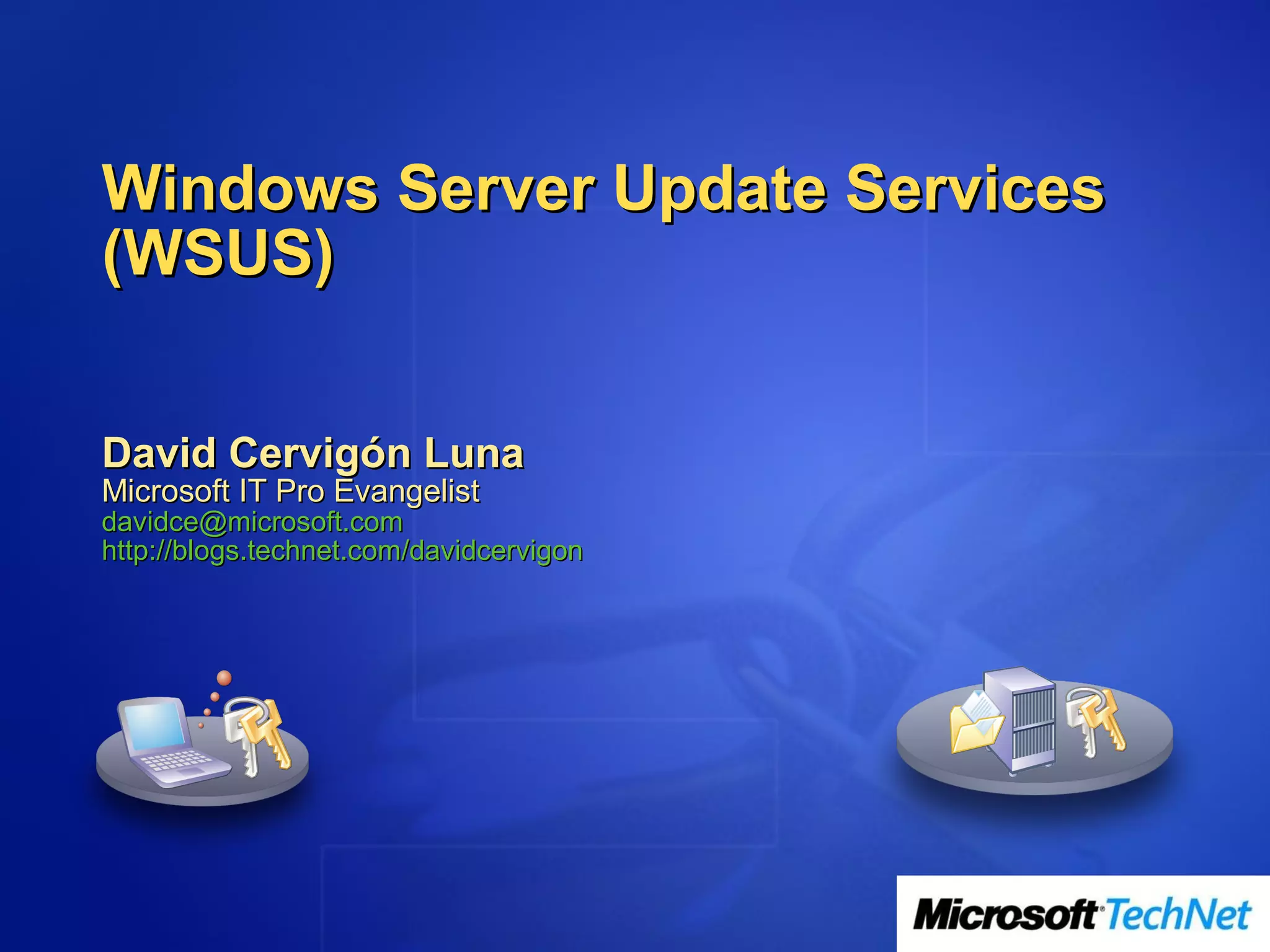 WSUS (Windows Server Update Services) es una herramienta gratuita de Microsoft que automatiza el proceso de gestión de actualizaciones de software. Los servidores WSUS descargan actualizaciones de Microsoft Update y las distribuyen a los clientes de Windows asignados a grupos de destino. Los administradores aprueban qué actualizaciones se instalarán y cuándo. WSUS mejora la gestión de parches y proporciona escalabilidad para la distribución de actualizaciones.