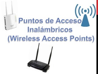 Un punto de acceso inalámbrico es un dispositivo que permite la conexión de dispositivos como teléfonos, laptops y otros a una red inalámbrica mediante ondas de radio. Los puntos de acceso pueden conectarse a una red cableada y transmitir datos entre dispositivos conectados de forma inalámbrica y por cable. Existen diferentes modos de operación como raíz, repetidor y puente, y se clasifican como puntos de acceso básicos o robustos dependiendo de su capacidad y funcionalidad.