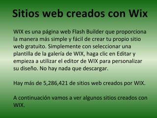 Wix es una plataforma para crear sitios web gratuita y fácil de usar, que proporciona plantillas entre las que elegir y editar para personalizar el diseño sin necesidad de descargas; más de 5 millones de sitios web han sido creados con Wix.