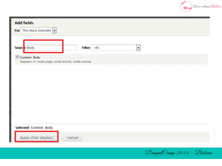 El documento presenta el grupo 'Women in Drupal Bolivia', liderado por Karen Da Cruz y Verónica Vedia, y ofrece una introducción al sistema de gestión de contenidos Drupal, destacando su creciente uso y la variedad de roles involucrados en su desarrollo. Se incluyen instrucciones básicas para la instalación, creación y personalización de sitios web en Drupal, así como recursos y comunidades relevantes para usuarios. Además, se menciona un caso práctico sobre la instalación de un tema y la configuración de bloques en una página.