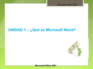 Este documento proporciona una introducción a Microsoft Word 2007, incluyendo sus herramientas principales y funciones. Explica que Word es un procesador de texto y menciona algunas alternativas tradicionales y no tradicionales. Además, describe las ventanas, menús, versiones de documentos, tipos de letra, interlineado, salto de página, diseño de página, encabezados y pies de página, tablas, plantillas, índice automático, notas y diagramas de Word 2007. Finalmente, presenta un