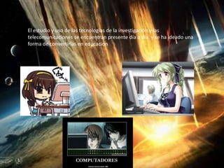 El documento habla sobre cómo las tecnologías de investigación y telecomunicaciones se están utilizando cada vez más en educación. Propone que una red permitiría a académicos trabajar flexiblemente y de manera cooperativa en desarrollo académico, científico, técnico y cultural. Divide las redes en reales y virtuales, institucionales e individuales, y especializadas.