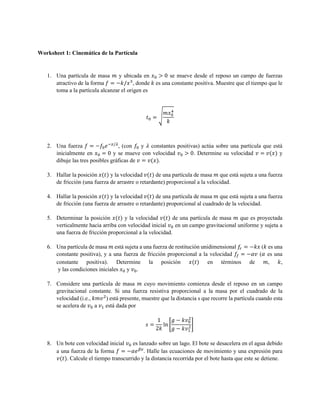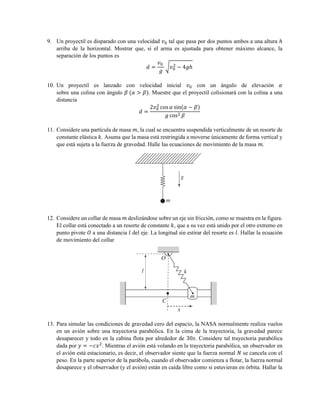 Este documento presenta 25 problemas de cinemática de partículas que involucran fuerzas como la gravedad, fuerzas elásticas, fuerzas de fricción y fuerzas centrípetas. Los problemas cubren temas como movimiento uniformemente acelerado, movimiento parabólico, oscilaciones armónicas simples y movimiento circular uniforme. Se piden determinar ecuaciones de movimiento, posiciones, velocidades, aceleraciones, tiempos y distancias recorridas.