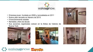 El documento presenta una empresa de marketing multinivel fundada en 2009 que ofrece descuentos y beneficios a sus asociados a través de una red de empresas asociadas. La empresa tuvo un crecimiento del 300% en 2012 y espera generar $100 millones en ingresos en 2013. Ofrece varios servicios y productos a sus miembros como cursos de idiomas, protección de datos, energizantes naturales, viajes y más.