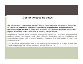 El documento describe las principales teorías, escuelas y enfoques de la administración. Estos incluyen la teoría científica de la administración, la teoría clásica de la organización, el enfoque de las relaciones humanas, la escuela de las ciencias administrativas, el enfoque de sistemas, el enfoque de contingencias y el enfoque de los recursos humanos. El documento proporciona una visión general de los diferentes marcos teóricos que han guiado el desarrollo del campo de la administración.