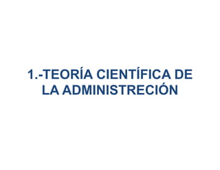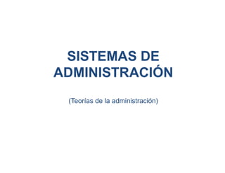 Este documento resume las principales teorías de la administración, incluyendo la teoría científica de la administración de Taylor, la teoría clásica con los aportes de Fayol y Weber, el enfoque de las relaciones humanas, la escuela de las ciencias administrativas, el enfoque de sistemas, el enfoque de contingencias y el enfoque de los recursos humanos. Describe los principales conceptos y características de cada teoría y su evolución a través del tiempo para considerar cada vez más los factores humanos en las