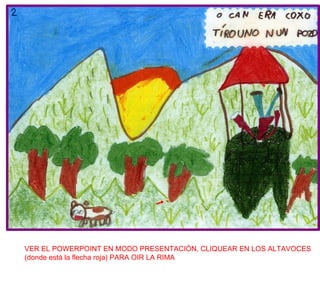 El documento instruye al usuario a ver un PowerPoint en modo presentación y hacer clic en los altavoces para escuchar una rima.