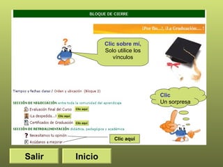 El bloque de cierre de un curso en Moodle incluye elementos como una evaluación final para los estudiantes, un foro de despedida para expresar sentimientos, instrucciones para descargar un certificado de graduación si está planeado, y una sección de retroalimentación para que los estudiantes provean comentarios sobre su experiencia en el curso y el aula virtual.