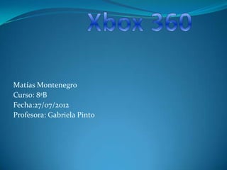 El documento proporciona información sobre la Xbox 360, incluyendo sus características principales como la CPU basada en IBM PowerPC y la unidad de procesamiento gráfico que soporta shaders unificados. También describe el proceso de arranque de la Xbox 360, desde la carga inicial del firmware hasta el inicio del sistema operativo. Finalmente, incluye secciones sobre el desecho adecuado de las consolas y cómo usar al máximo las funciones de la Xbox 360 más allá de solo jugar videojuegos.