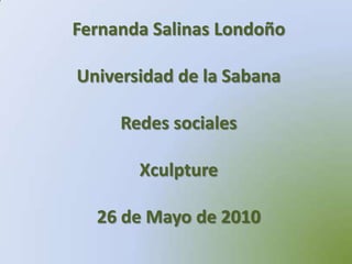 Xculpture es la primera red social española dedicada al bienestar y el fitness que permite a los usuarios crear y compartir programas de entrenamiento, hacer un seguimiento de resultados y aportar y comentar información relacionada con el deporte y la salud. La red social fue creada por un equipo valenciano comprometido con la importancia del deporte y la salud y brinda herramientas para que los usuarios puedan acceder al mundo del deporte y gestionar conocimiento relacionado.