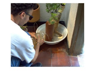 Este documento describe un proyecto artístico urbano que convierte desperdicios en plantas, frutos y flores a través de tres fases: la primera crea palmeras, la segunda un jardín y la tercera una huerta. Explica las estructuras, el laboratorio, la recolección de materiales y la instalación de las primeras plantas de cada fase del proyecto.