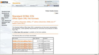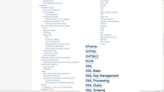 El documento presenta varias aplicaciones de XML como DocBook, Chemical Markup Language, Keyhole Markup Language, Mathematical Markup Language, Open Document, Open XML Format, Scalable Vector Graphics y Systems Biology Markup Language. Brevemente describe cada una y proporciona ejemplos de código XML para representar información química, matemática, geoespacial y biológica.