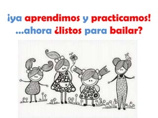 Este documento presenta una breve introducción al folclore chileno, definiendo el término "folklore" y enumerando algunos de sus elementos como la comida, la música, la danza y la artesanía. Luego menciona algunos instrumentos musicales típicos de Chile y canciones infantiles populares como "Arroz con leche", "Caballito blanco" y "Tengo, tengo, tengo". Finalmente, anima al lector a bailar canciones folclóricas chilenas.