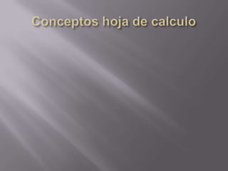 Este documento define varios términos relacionados con hojas de cálculo y bases de datos. Explica que una celda es una ubicación única en una hoja de cálculo para ingresar datos, mientras que un formulario es un documento con campos para escribir u opciones. También describe gráficos estadísticos, macros, funciones, filtros y bases de datos. Además, menciona que las hojas de cálculo permiten manipular datos y que el profesor Richard fue pionero en su desarrollo en 1961.
