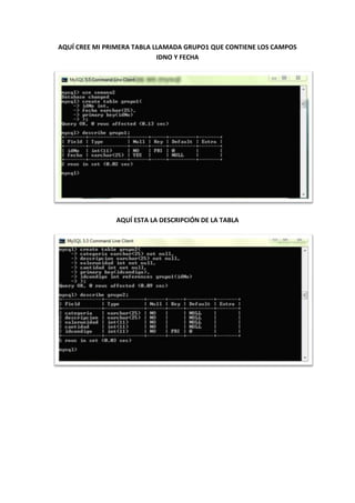 AQUÍ CREE MIPRIMERA TABLA LLAMADA GRUPO1 QUE CONTIENE LOS CAMPOS