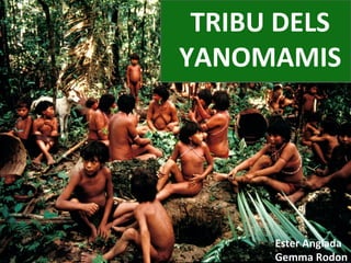 El documento resume la situación geográfica, características raciales, cultura y problemática actual de la tribu Yanomami. La tribu Yanomami vive en la selva amazónica y se divide en cazadores, agricultores y pescadores. Su cultura incluye viviendas llamadas yanos, vestimenta tradicional, estructuras familiares y creencias religiosas. Actualmente enfrentan problemas como la pérdida de territorio y amenazas a su forma de vida tradicional.