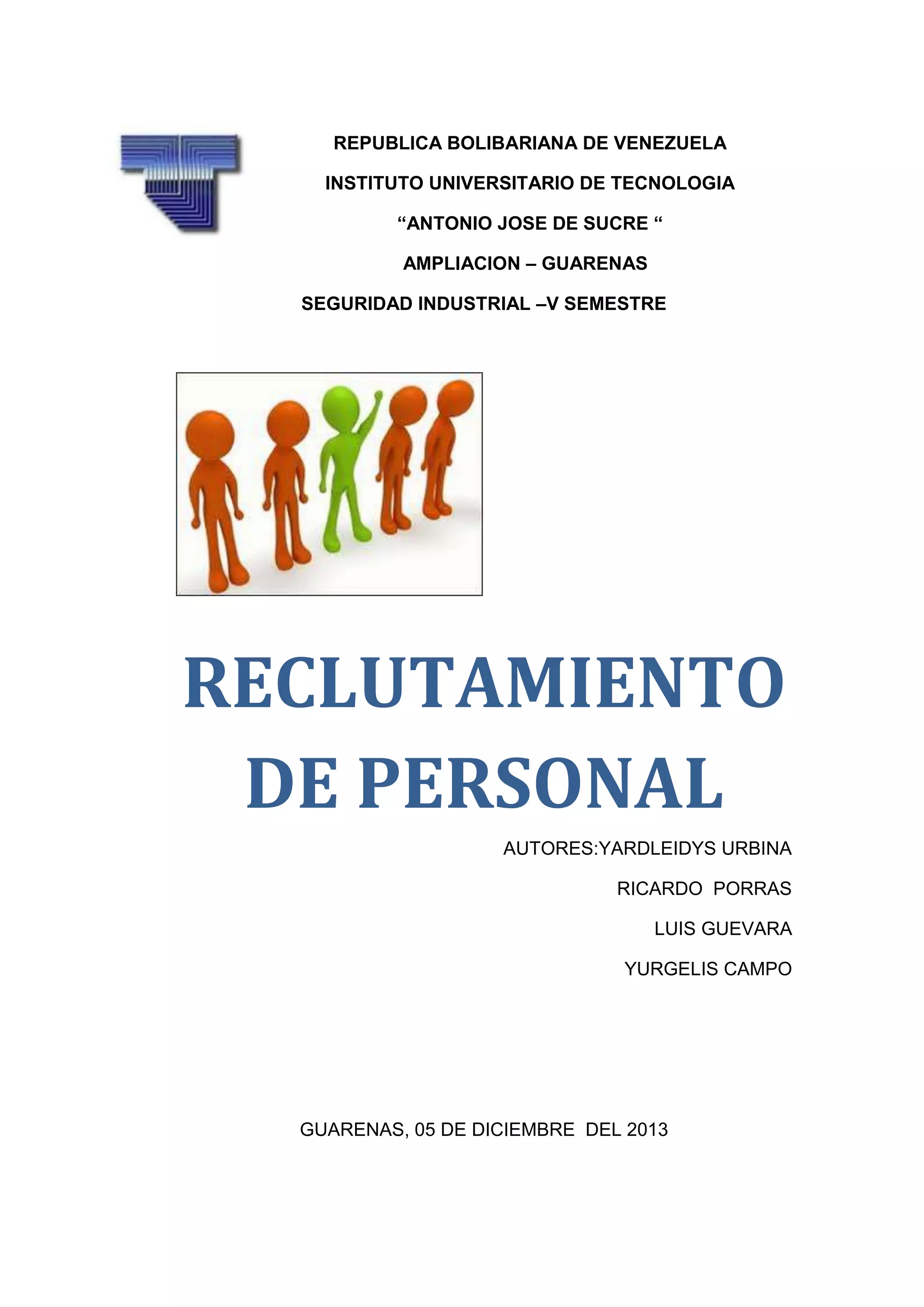 Este documento resume el tema del reclutamiento de personal en 3 oraciones. Explica que el reclutamiento es el proceso de atraer candidatos calificados para cubrir puestos vacantes en una empresa. Luego describe las etapas clave del proceso de reclutamiento, que incluyen analizar las fuentes internas y externas de candidatos, seleccionar los medios para anunciar las vacantes y definir la información que se comunicará. El objetivo final es conseguir un grupo numeroso de solicitantes para el proceso de selección.