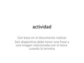 Este documento presenta seis diapositivas sobre el tema de la ciberdependencia y los peligros en Internet. Cada diapositiva contiene una frase breve y una imagen relacionada con el tema, abordando aspectos como los problemas de la ciberdependencia, los delitos cibernéticos, cómo manejar el miedo a perderse cosas en línea, la importancia de pensar antes de actuar y tener cuidado con los impulsos y las personas malintencionadas en la red.