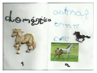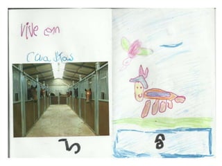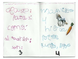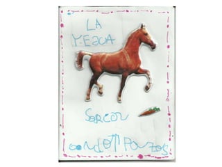 El documento habla sobre una visita de la científica Sofía Gordon. Contiene instrucciones sobre cómo mover las piernas para que la yegua trote y cómo detenerla tirando de las riendas. El libro fue elaborado por Sofía y recibió felicitaciones por su buen trabajo.
