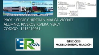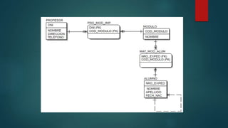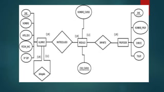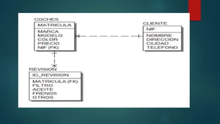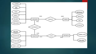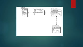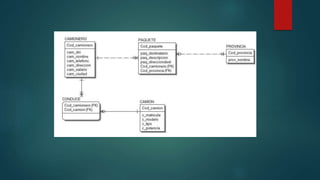 El documento presenta 6 ejercicios de modelado entidad-relación. Cada ejercicio describe un escenario de negocio diferente e incluye los datos relevantes de las entidades y relaciones. Los escenarios incluyen la gestión de transporte de paquetes, una base de datos de un instituto, una concesionaria de automóviles, una clínica, una tienda informática y proveedores. El objetivo es diseñar el modelo E-R para cada escenario considerando las entidades, atributos y relaciones descritas.