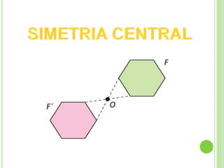 La simetría se refiere a la relación espacial entre figuras, donde puntos corresponden de manera equidistante respecto a un eje, punto o plano. Existen dos tipos principales de simetría: la simetría axial, donde una figura puede ser doblada a lo largo de una línea llamada eje de simetría, y la simetría central, que implica rotación de 180 grados alrededor de un punto central. Se incluyen ejercicios y autoevaluaciones para practicar la identificación de ejes de simetría.