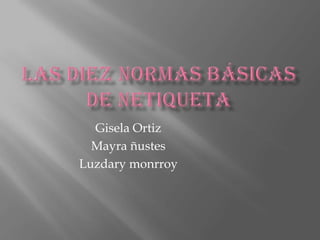 Este documento presenta las diez normas básicas de la netiqueta. Estas normas incluyen tratar a los demás con respeto en internet de la misma manera que en la vida real, aprender las convenciones de cada sitio web antes de participar, respetar el tiempo y ancho de banda de los demás, y compartir conocimiento mientras se evitan controversias y se respeta la privacidad de los demás. El propósito de estas normas es ayudar a los nuevos usuarios a navegar en internet de una manera ética y respetuosa.