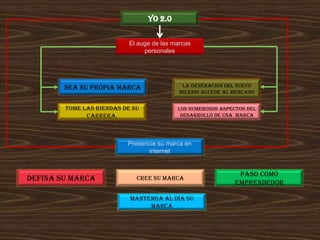 El documento habla sobre la importancia de desarrollar una marca personal en la era digital. Explica que las personas ahora deben tomar el control de su propia carrera profesional mediante la creación y promoción coherente de su marca personal en internet, redes sociales y otros foros. También enfatiza la necesidad de mantener y actualizar constantemente su marca para proyectar una imagen profesional sólida basada en logros comprobables y cualidades únicas.