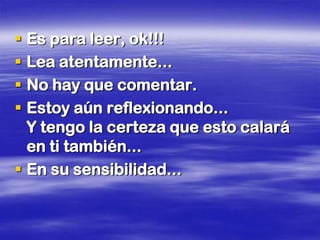 La historia cuenta la trágica muerte de un niño llamado Julio que amaba profundamente a su familia. A pesar de expresar su amor repetidamente, su padre y su hermano no le prestaban atención y en ocasiones lo regañaban. Una noche, Julio tuvo un sueño profético sobre su muerte inminente. A la mañana siguiente fue encontrado muerto en su cama, sosteniendo una nota donde expresaba su amor por su familia y amigos. La historia enfatiza la importancia de aprovechar el tiempo para amar y ser am