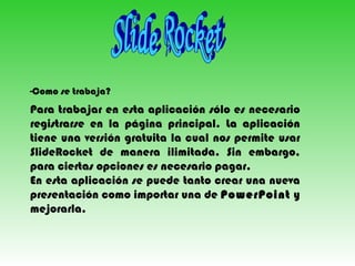 Prezentit es una herramienta en línea gratuita para crear presentaciones que permite insertar texto, imágenes y cambiar colores de forma sencilla desde cualquier navegador. Ofrece las funciones básicas de edición de presentaciones de forma intuitiva y permite guardar las presentaciones en la nube para acceder a ellas desde cualquier lugar.