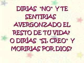 Este documento cuenta la historia de una niña de 5 años cuyos padres ateos murieron en una pelea frente a ella. Fue adoptada por una madre cristiana y en su primera clase de la escuela dominical, la niña reconoció a Jesús en una foto como "el hombre que me estaba abrazando la noche que mis padres murieron", a pesar de nunca haber oído hablar de él antes. El documento luego argumenta que esto demuestra la existencia de Dios y la importancia de compartir la fe.