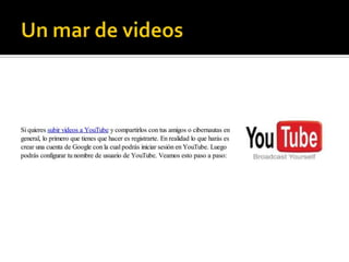 YouTube permite a los usuarios subir y compartir videos en formato FLV para evitar copias fáciles, aunque existen herramientas para descargarlos. Aunque muchos videos incluyen contenido con derechos de autor, YouTube solo los retira si el propietario lo solicita, suspendiendo la cuenta del usuario después de tres advertencias. YouTube ha cambiado la definición de derechos de autor para videos compartidos en línea.