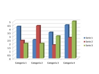 Este gráfico muestra tres series de datos numéricos para cuatro categorías diferentes. Los valores varían entre las series y categorías pero generalmente están entre 0 y 5.