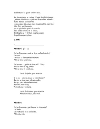 Este documento contiene varios poemas del autor Paul Celan escritos en alemán. Los poemas exploran temas como la muerte, el Holocausto, la soledad y la pérdida. Usan imágenes crípticas y un lenguaje minimalista y fragmentado para transmitir emociones profundas. El documento ofrece una muestra representativa de la poesía introspectiva y lúgubre de Celan.