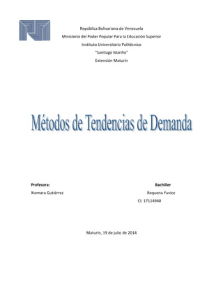 Este documento presenta diferentes métodos cuantitativos y cualitativos para realizar pronósticos de demanda. Describe varios métodos cuantitativos como promedios simples, promedios móviles, suavización exponencial y descomposición clásica. Luego explica en detalle tres técnicas de series de tiempo: tasa de crecimiento lineal, promedio móvil y suavización exponencial. Finalmente, introduce la suavización exponencial doble o ajustada para pronosticar modelos con tendencia.