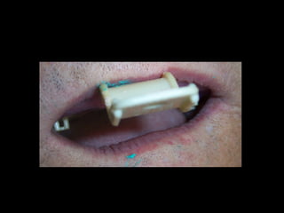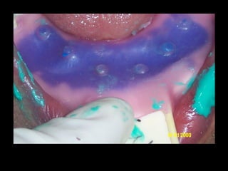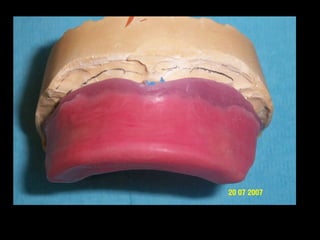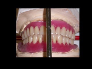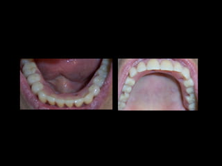 El documento describe el caso clínico de un paciente que recibió una prótesis híbrida definitiva después de 5 meses de usar prótesis provisionales. Se realizaron registros oclusales y pruebas de dientes para las prótesis provisionales y definitivas. La prótesis híbrida definitiva se ajustó con Duralay para un ajuste pasivo y se probaron la guía anterior y los dientes antes de entregar la prótesis al paciente.