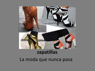 Las zapatillas son una moda que nunca pasa de moda, aunque son más para la juventud. El documento habla sobre lo excentico de las zapatillas y recomienda disfrutar de una buena imagen con zapatillas de esta era.