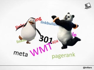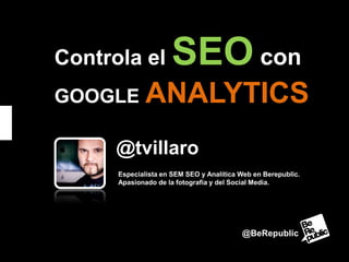 El documento presenta una serie de diapositivas sobre cómo usar Google Analytics para controlar y mejorar el SEO de un sitio web. Explica cómo segmentar el tráfico para analizar las diferentes fuentes, métricas clave, informes personalizados y alertas que pueden usarse para mejorar el posicionamiento orgánico y la rentabilidad de las campañas SEO.
