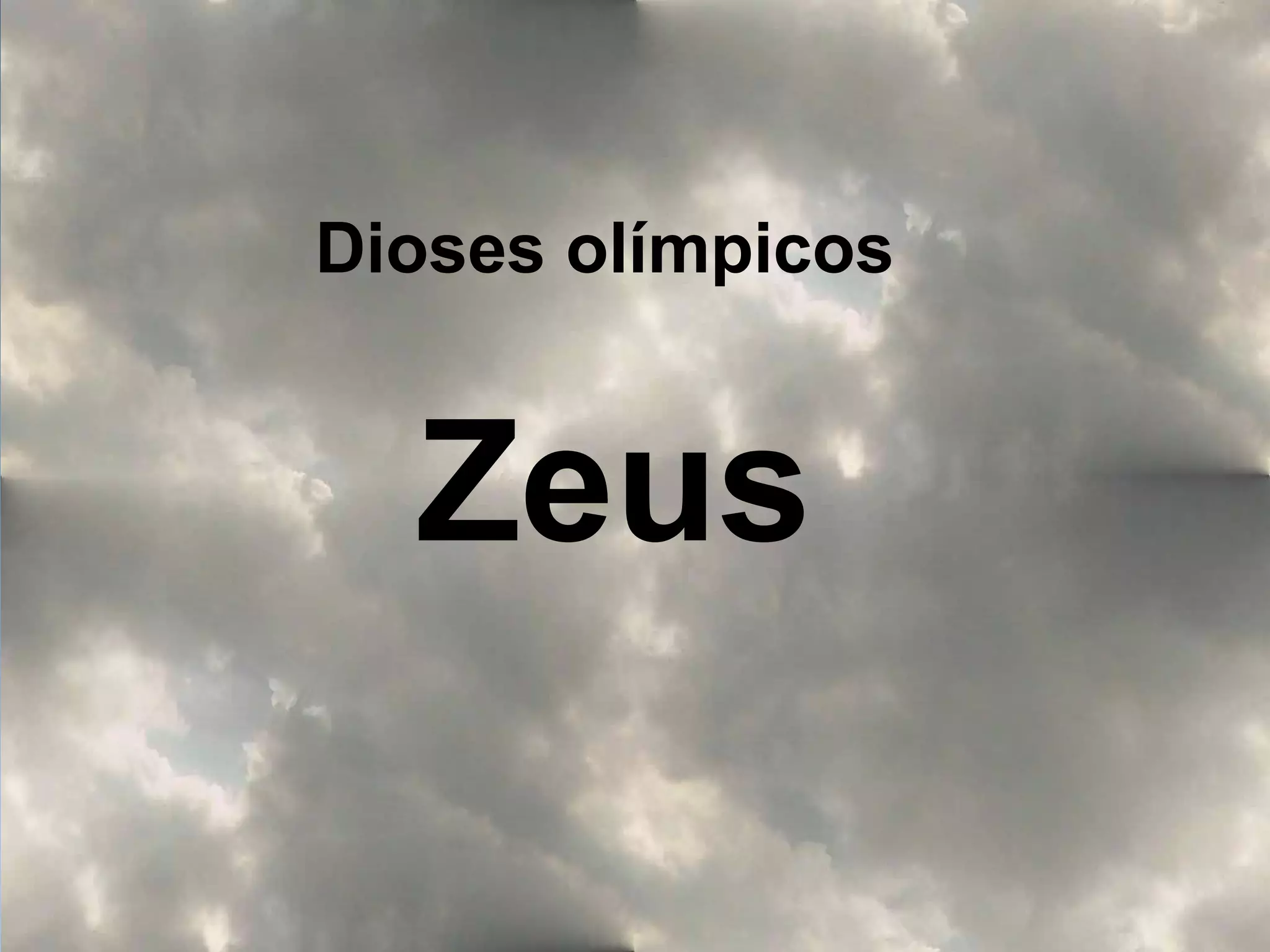 Este documento describe a Zeus, el dios supremo de la mitología griega. Explica sus nombres y epítetos, su genealogía como hijo de Cronos y Rea, su dominio como dios del cielo y la justicia, y su representación habitual como un hombre barbudo sentado en un trono con un águila a sus pies. También resume sus numerosos amores con diosas como Metis, Hera, Eurínome y Leto, de los cuales nacieron importantes dioses y héroes de la mitología griega.