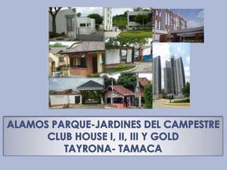 Este documento lista los patronos asignados a cada sector residencial de un desarrollo inmobiliario. Siete de los ocho sectores tienen un santo o persona religiosa designado como su patrono, mientras que el patrono de los sectores Tayrona y Tamaca aún no ha sido definido.